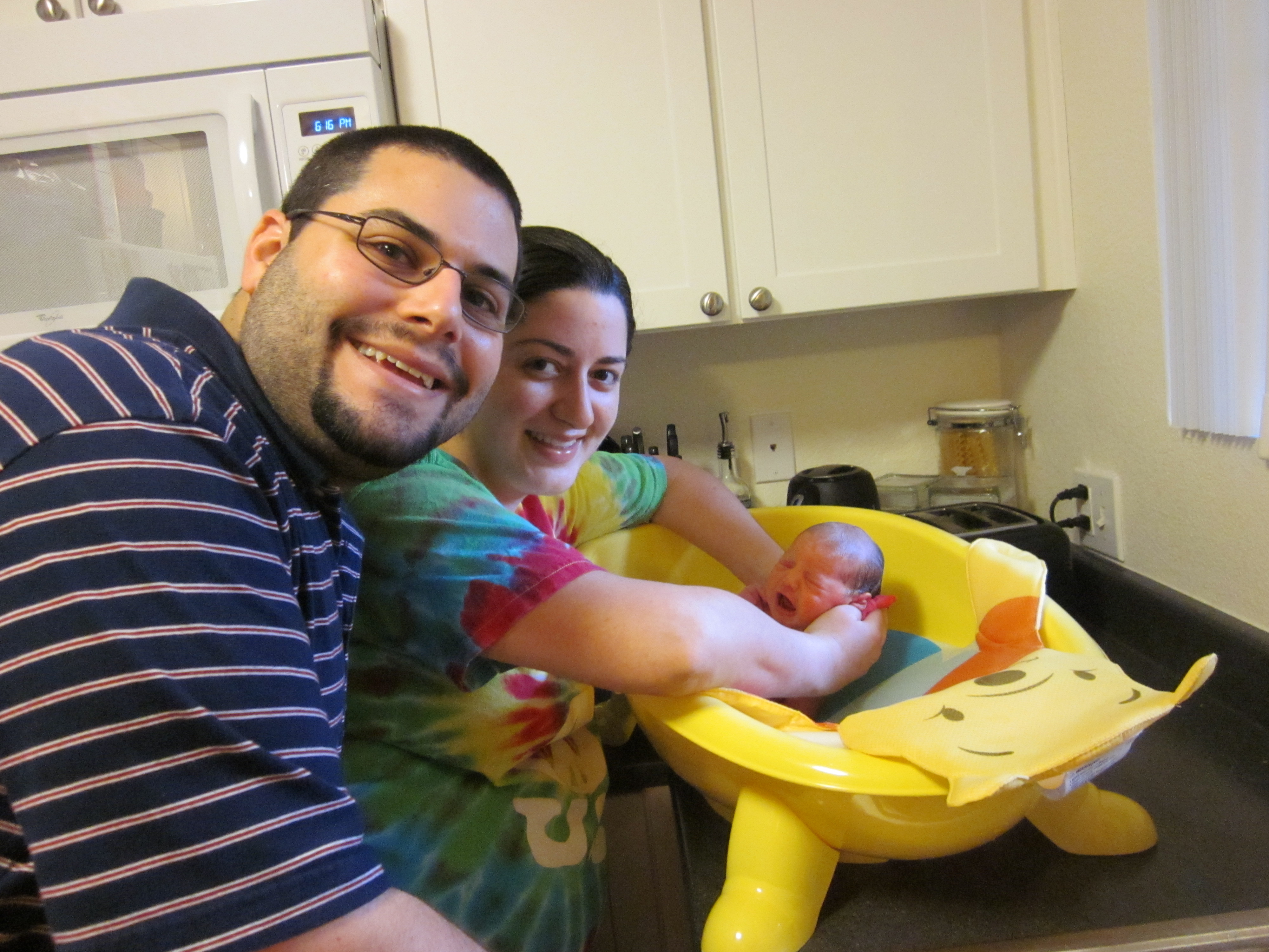Sarah’s first bath.