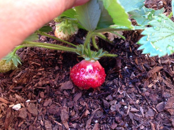 Once Sarah came down it was time to check in on our garden. This gorgeous little strawberry was ready to be picked. Yum!