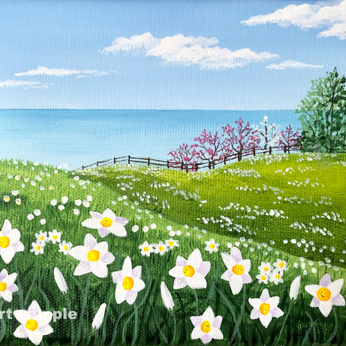 | メーカー | アクリル画 原画 「スイセンの咲く丘02」額縁付 SMサイズ キャンバス アクリル画 |