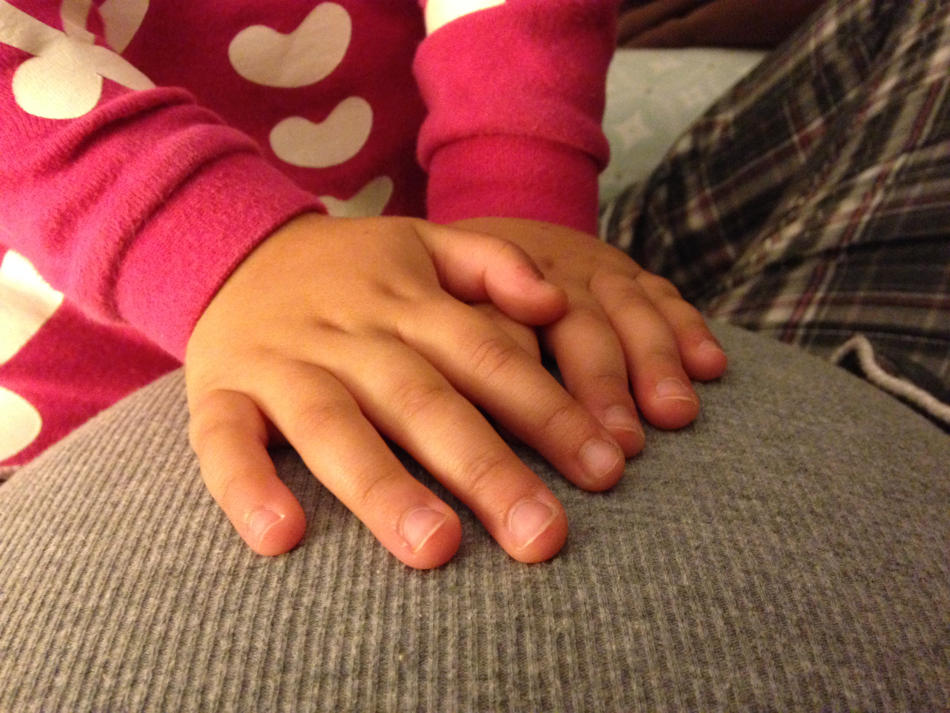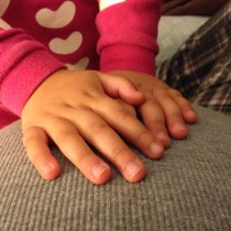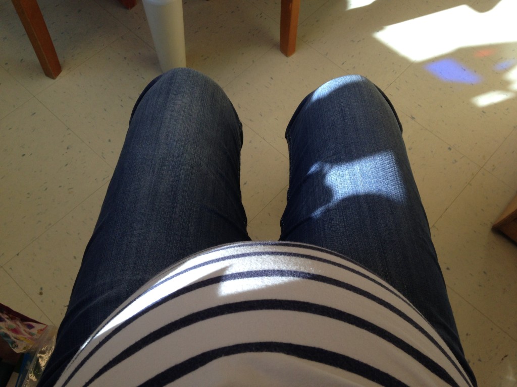 Sarah is very excited to be a big sister! She loves feeling for baby and touching my tummy. While reading a book before nap time the other day, baby kicked her back and Sarah turned around and said, “Hey!” I told her that baby is moving a lot now so she might feel some kicks while sitting on me. She responded with, “Can I feel her?” (Sarah thinks I’m having a girl, but then sometimes she thinks I’m having a boy.)
