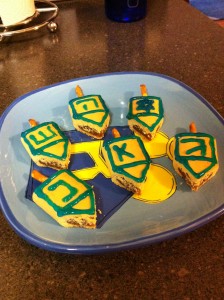 My tradition growing up was to light the menorah each night, recite a few prayers, open gifts (one gifts each night), sing songs, play with the dreidel and eat fried food! However this year there was a lot of going on.