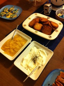 Store bought Potato Latkas (I hate the smell of fried food in my home) with apple sauce and sour cream.