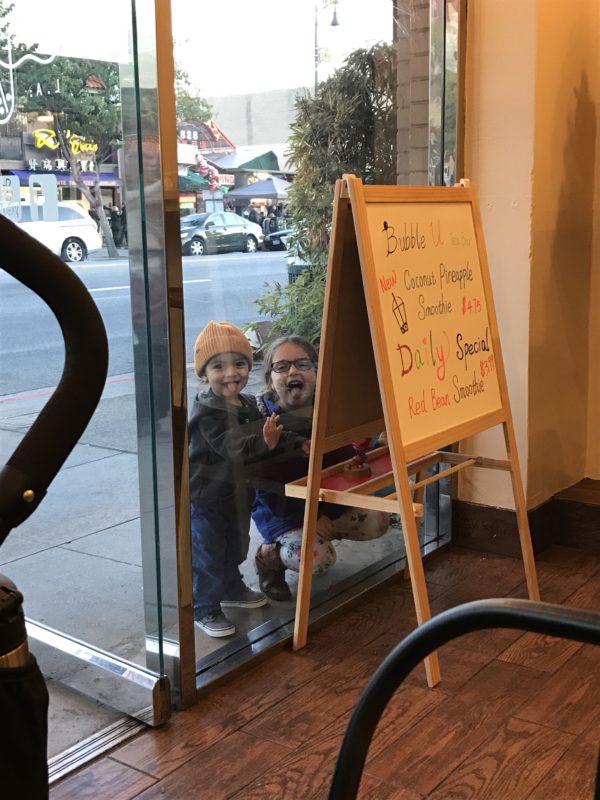 Later in the afternoon we met up with mother-in-law in Chinatown for some traditional Chinese food. It seemed like most of LA thought it was a good idea as there was over an hour wait. We walked around a bit until it got to cold. I found this cute little tea shop and ordered a hot jasmine milk tea. Yummm!