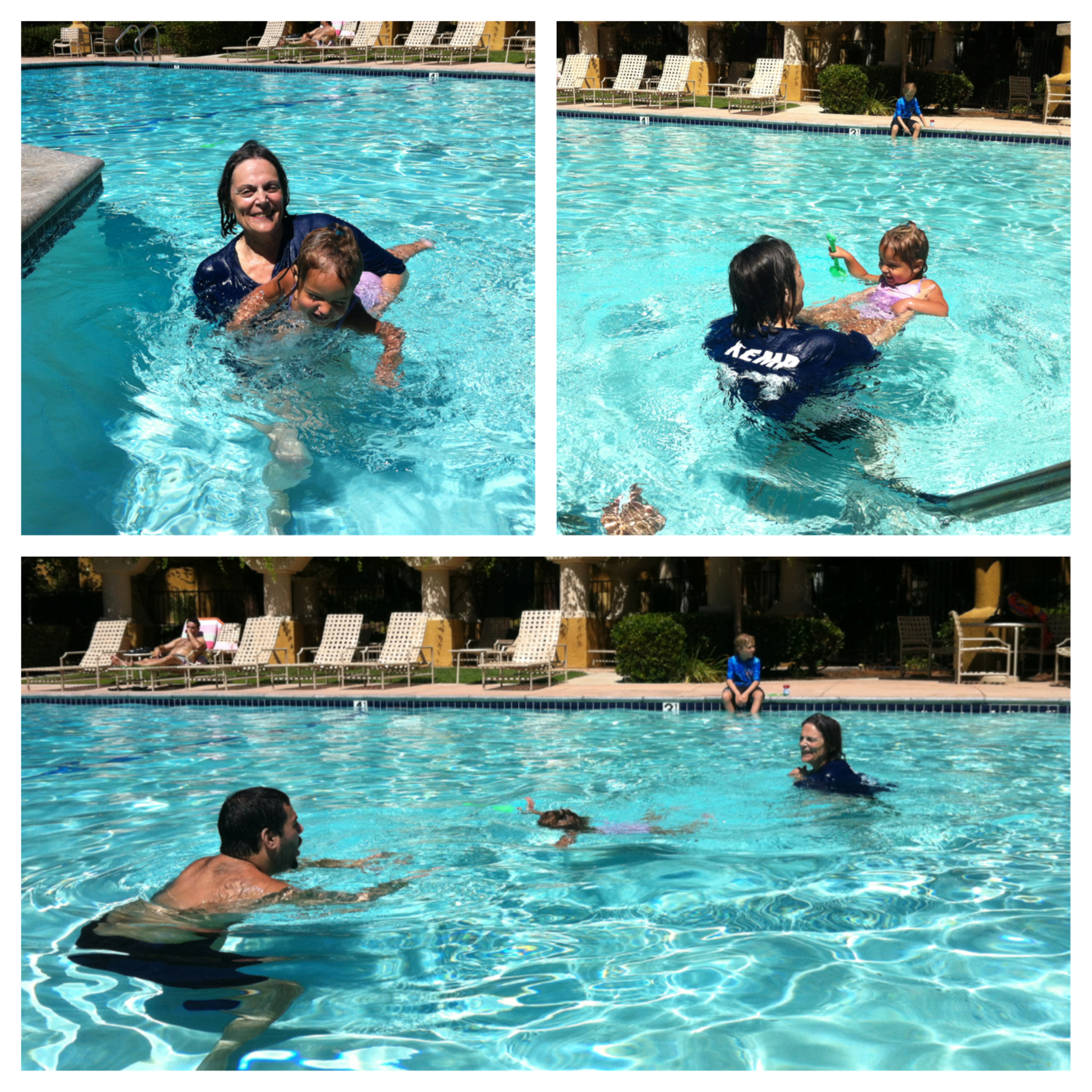 Since gma lives close by, she was able to come over today to play. We spent the morning splashing around in the pool and later hung out at the park.