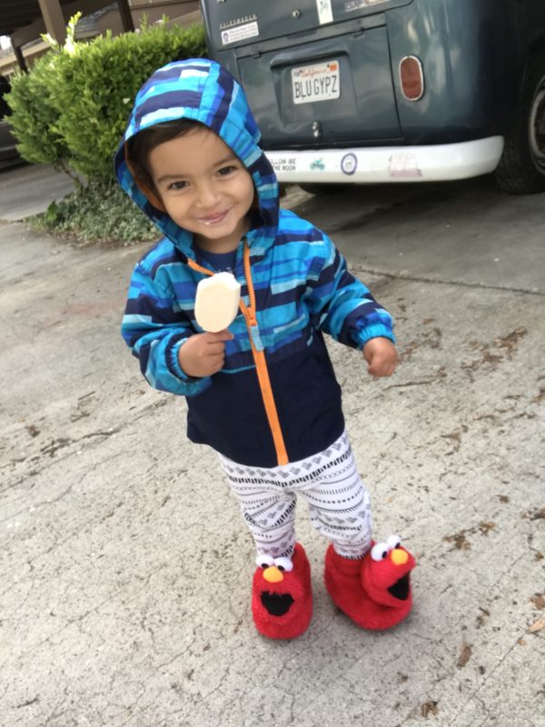 Food: Jacob loves drinking milk! He goes into the fridge several times a day to get his sippy cup of milk. Jacob has always eaten smaller portions. He prefers eating 1-2 meals a day. Doc said it’s ok as long as he’s growing. He loves “brown side chicken” aka shnitzel, broccoli, granola bars and ice pops.