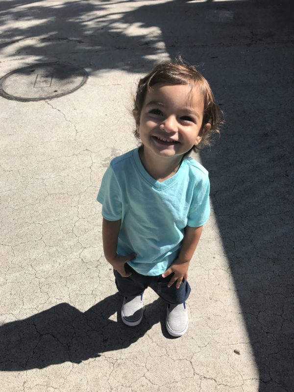 He’s sweet, gentle, kind, likes playing with anything with wheels and gives the best hugs! Randomly through out the day he will run up to us to tell us he loves us and then gives us a kiss. He is just the sweetest little toddler!
