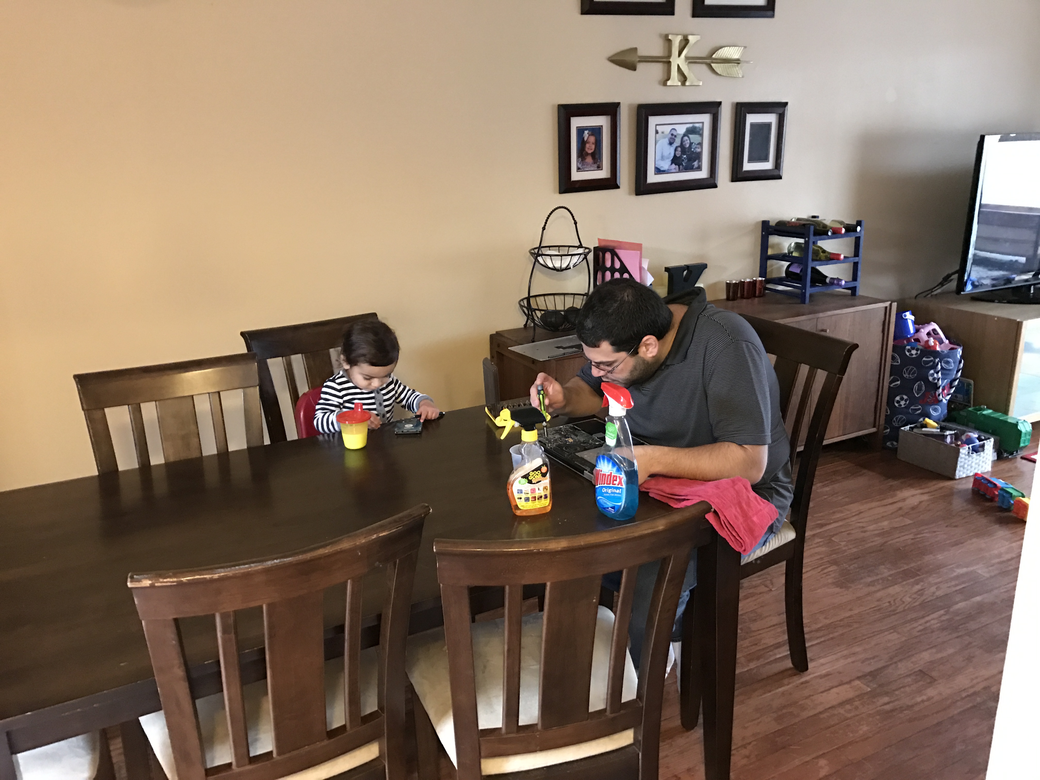 Anytime daddy fixes something around the house, Jacob can be found running to his own set of tools to do “working” with daddy. Watching hubby work on his car is also his favorite.