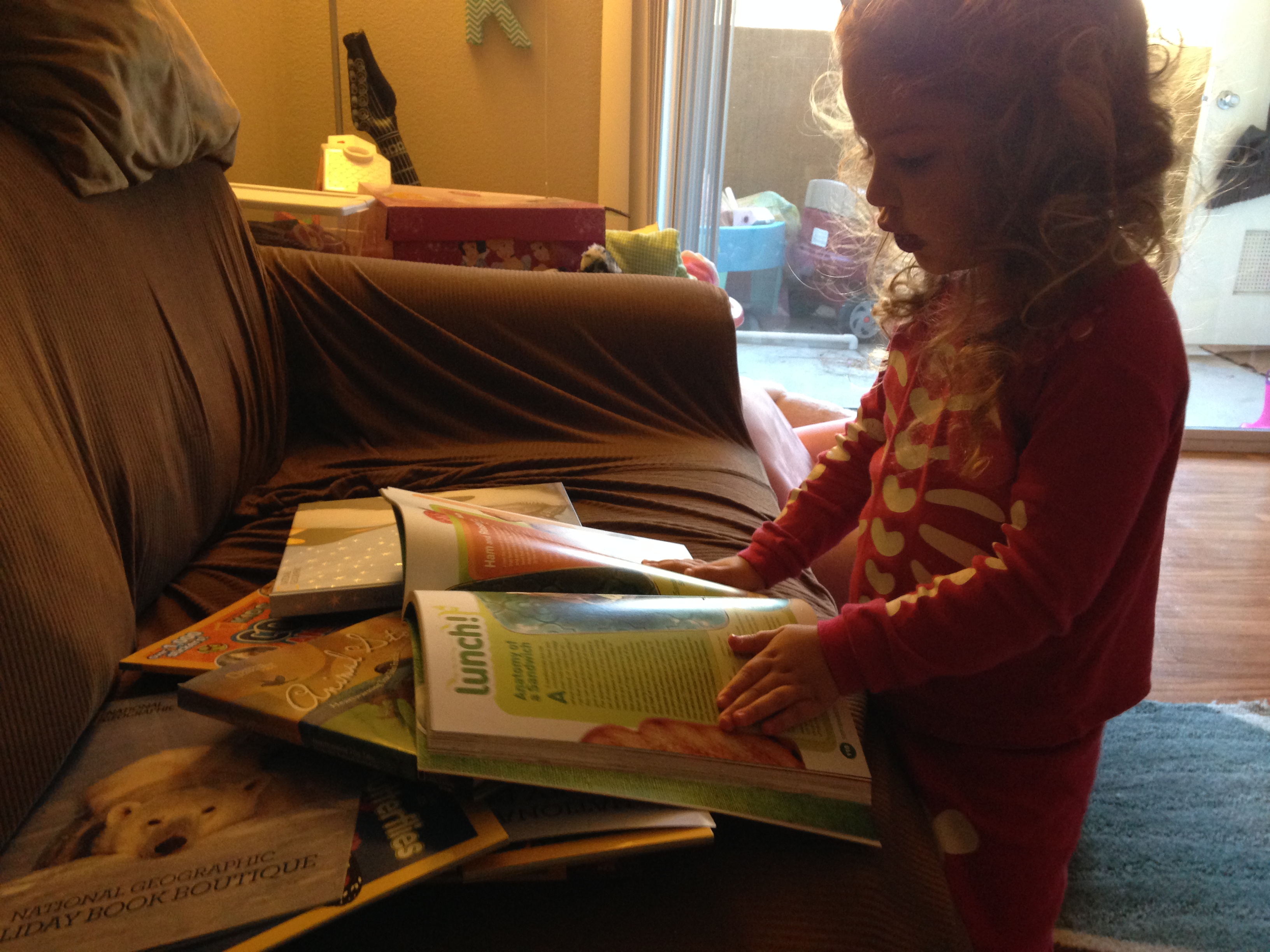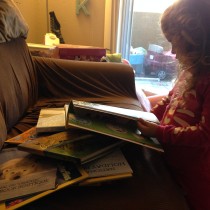 Ever since our daughter, Sarah was able to sit up, hubby and I have been reading to her before nap and before bed. 3.5 years later we still read to Sarah before nap and bed. I believe reading to your child daily builds a healthy vocabulary and is a great time to bond with your child.