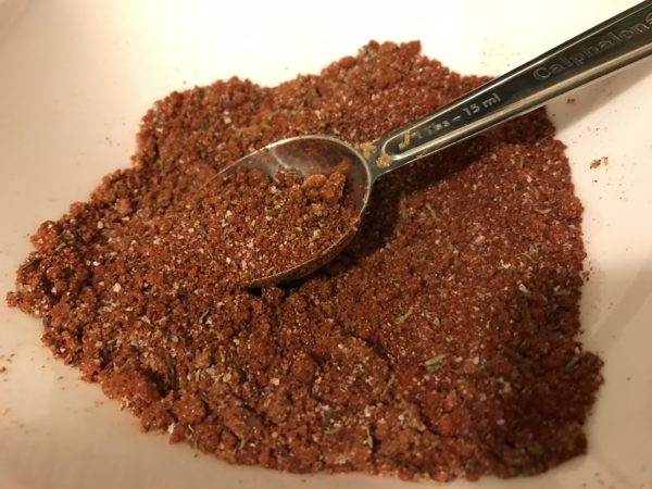 Mixing the rub.
