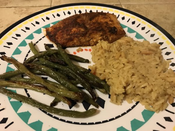 I served the Keta Salmon with roasted green beans and a side of pilaf for dinner.