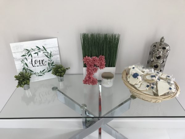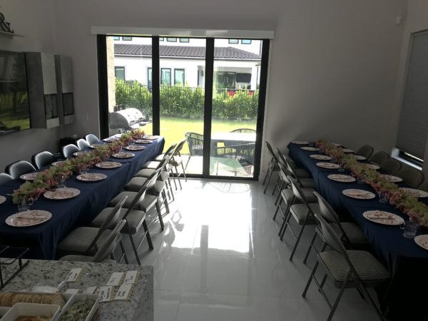 July in Florida is just gross so we opted for an inside event. My sister’s new house was the perfect spot. Her hubby moved the furniture and we set up shop with long tables in the living room.