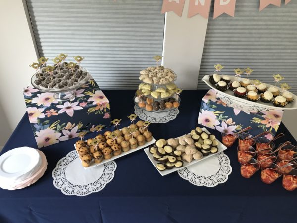 The dessert table consisted of mini scones, muffins, doughnut holes and mini bundlets from Nothing Bundt Cakes.