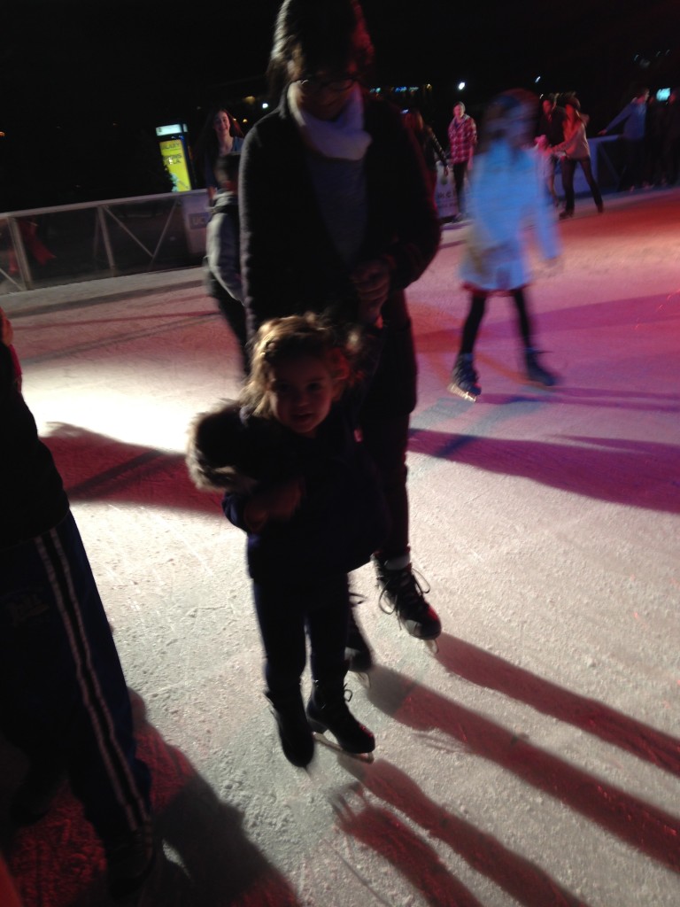 Later that night we took Sarah on her first Ice Skating experience. Between hubby’s back and my fear of falling on my butt we had Oshrat take her on the ice.