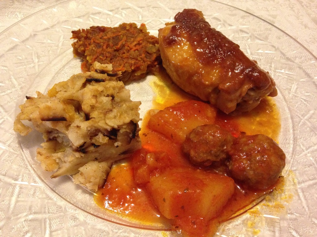 I doubled all the recipes so I could have enough food for the second night. Last minute I decided to add Sweet & Sour Meatballs.