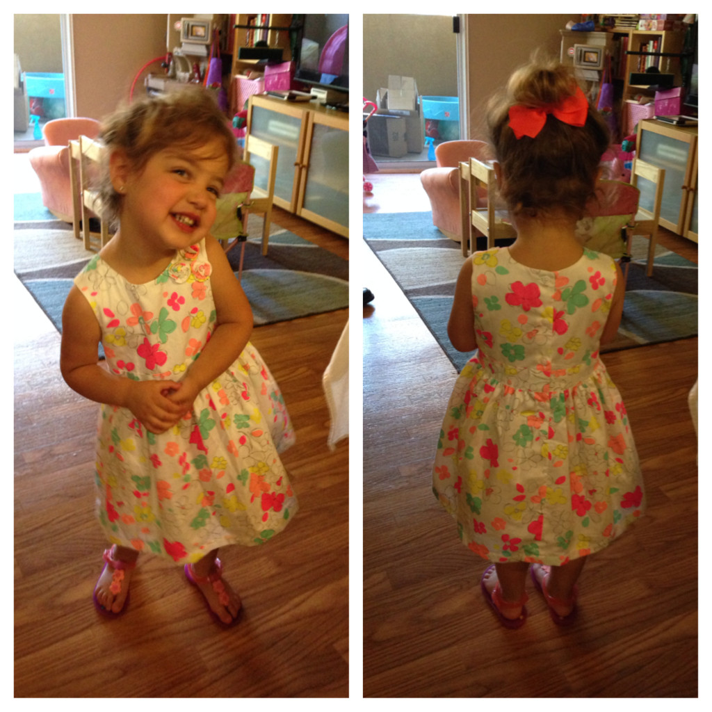 Getting Sarah dressed has become really difficult. She’s no longer interested in wearing dresses. So I did what every mom does, I told her I’d give her chocolate if she wore the dress (wait, not every mom does that?).