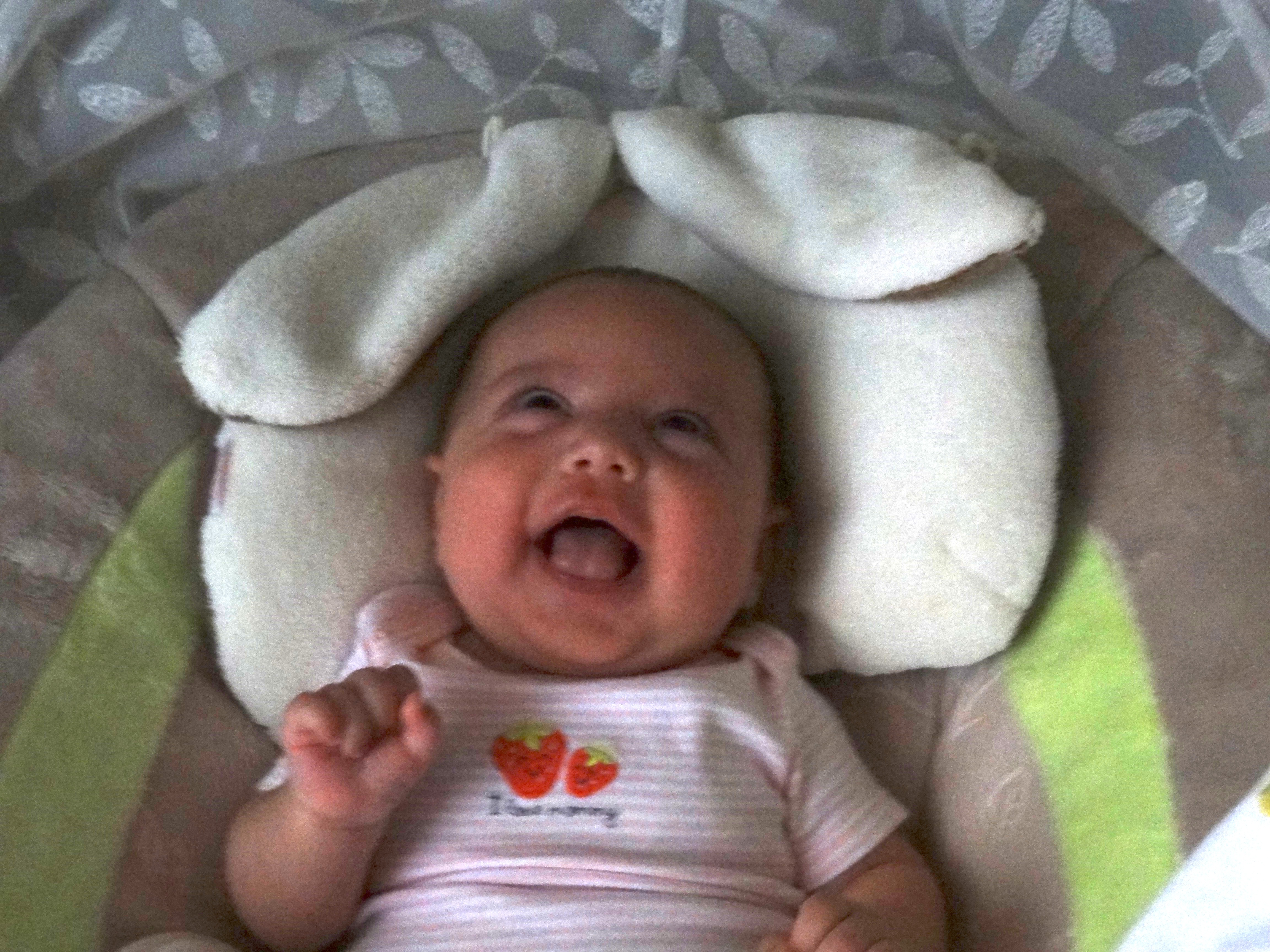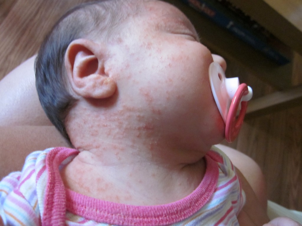 What’s New: Sarah is following objects with her eyes. She has a bad case of baby acne, heat rash and cradle cap.