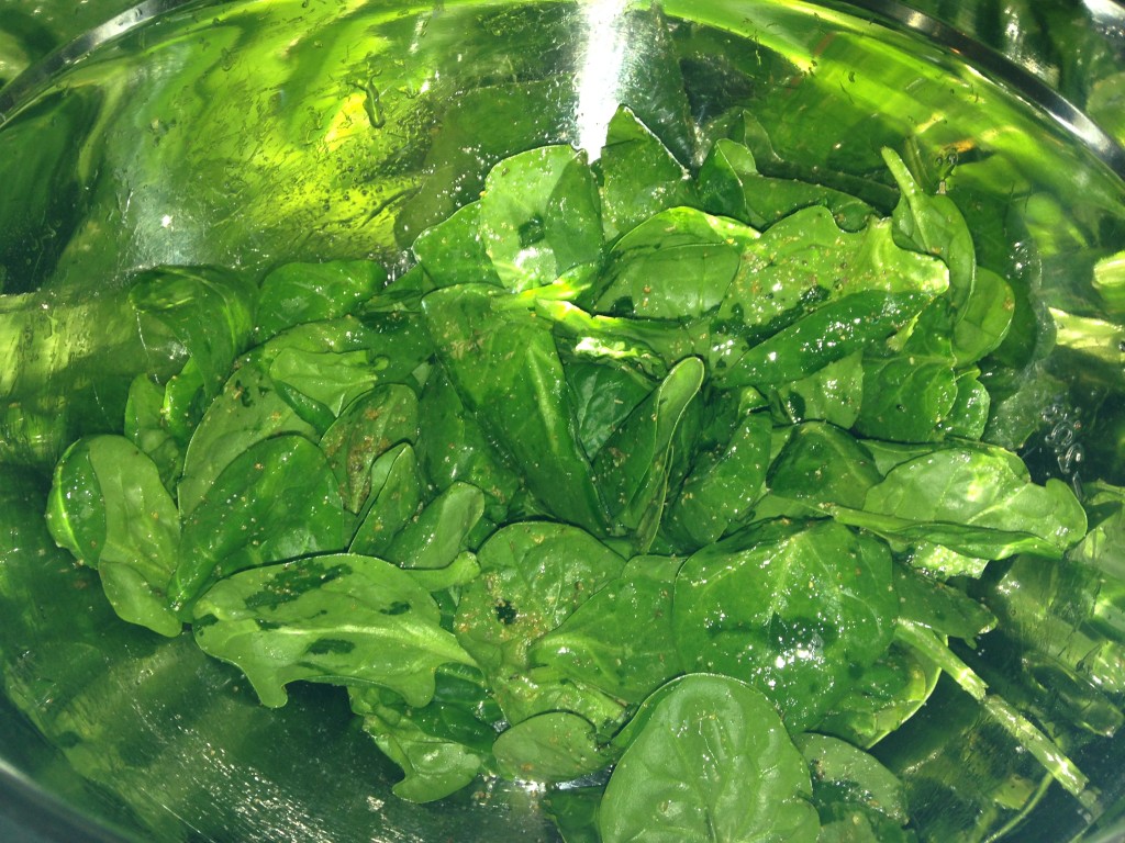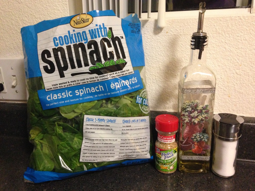 Here is what you will need: 2 large handfuls of spinach, 1 tbs of Italian seasoning blend, salt and olive oil.