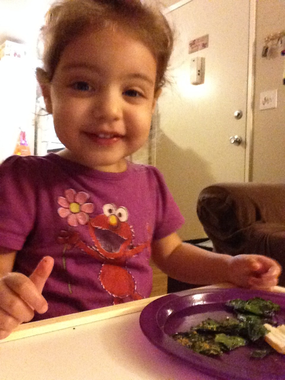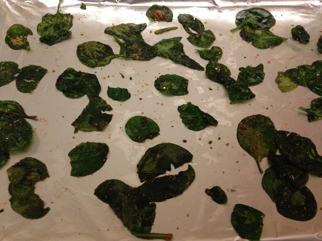 Every afternoon after Sarah’s nap I try to make us a healthy snack. My go to afternoon snack is my easy green smoothie. However, when it’s cold out and we are not in the mood for something cold, I make us a batch of spinach chips.
