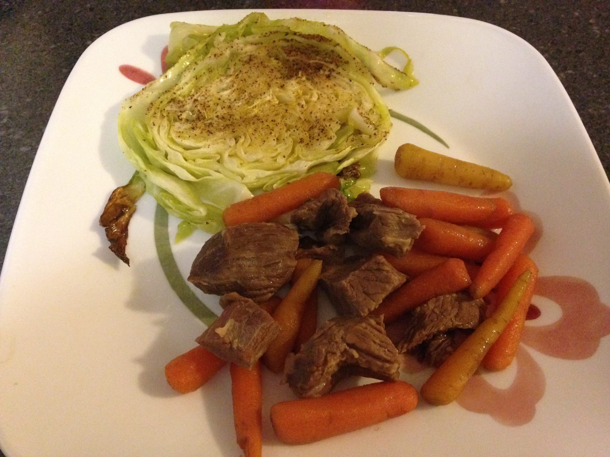 Once home we sat down for dinner. I made Slow Cooker Beef Stew with Carrots and Roasted Cabbage.