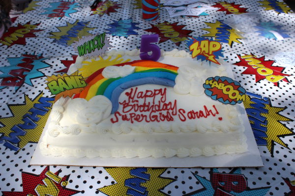 Sarah loved running around in her cape! At the end of the party she said, “I had the best day ever!” And truly, that’s all that matters.