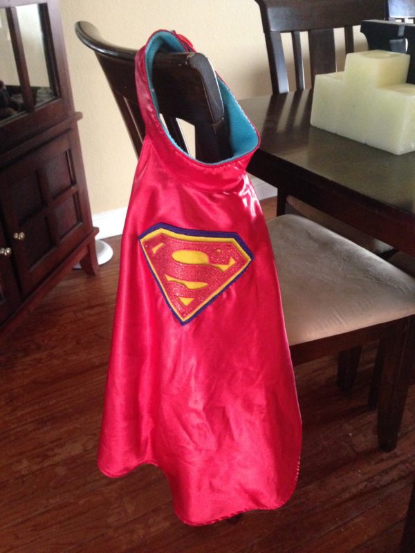 Jacob also had a mini cape that Velcro on his shirt.