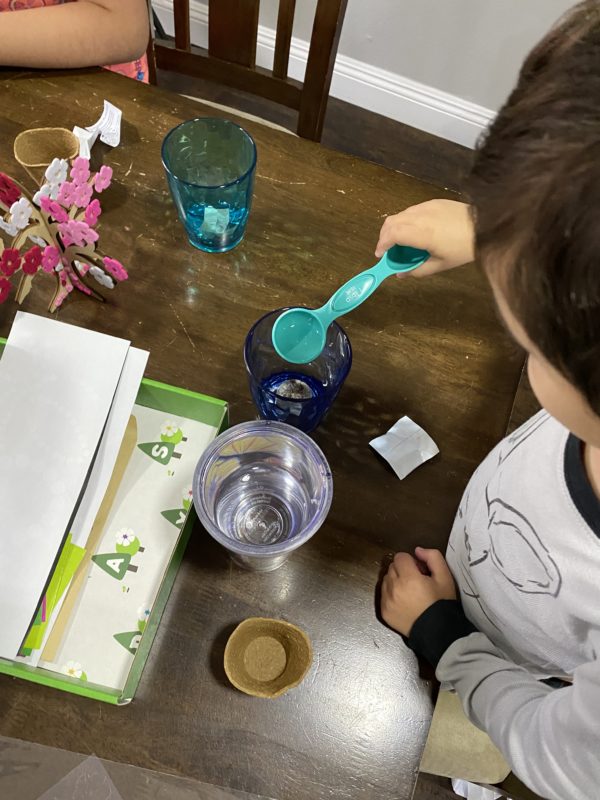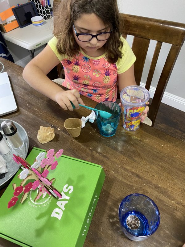 Thanks to our subscription box, Days we elevated our Tu Bishvat celebration this year with more fun actives. We started an herb garden, made chocolate with the 7 species stamp and made a mini wooden poppy tree.