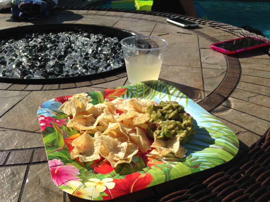 At only 125 calories per serving, I enjoyed my VitaFrute Lemonade cocktail over ice by the pool with a plate of guacamole and chips. Yum!