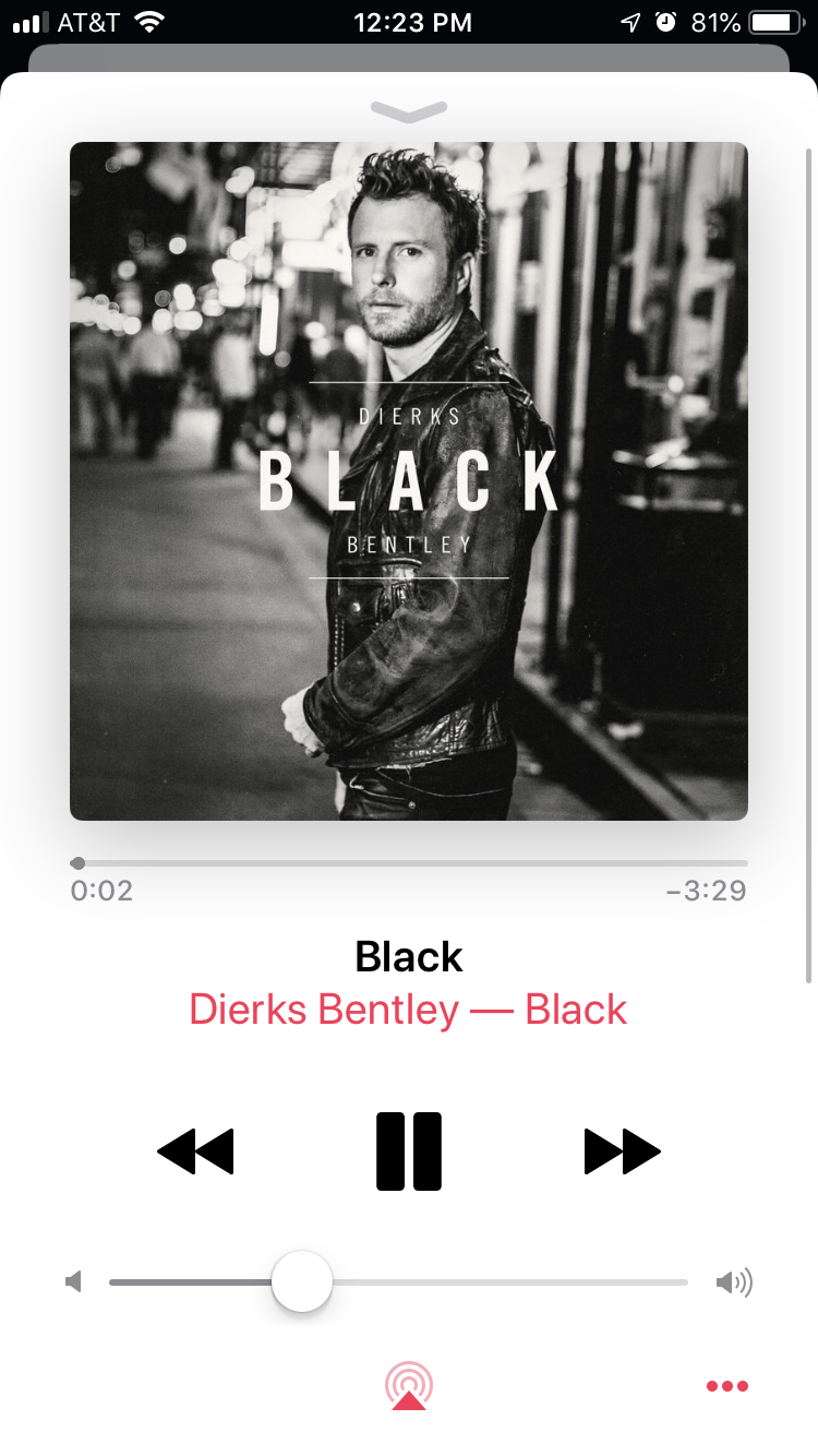 A few friends and I are going to see Dierks Bentley’s concert next month so I’ve been listening to his music recently. My favorite song is Black.