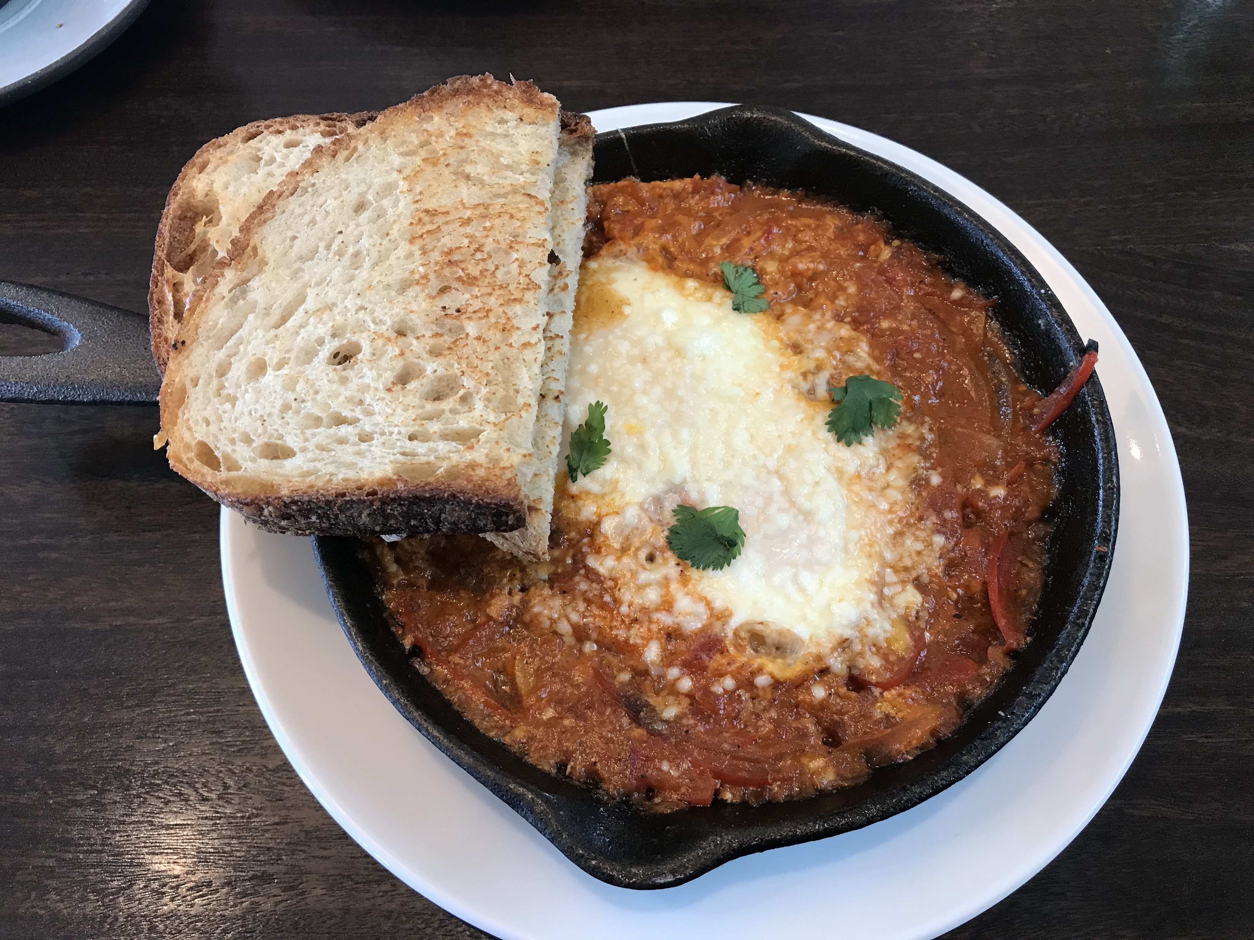 My friend, Miri and I went out for breakfast the the other day. I got shakshuka. It’s a baked Mediterranean dish with tomatoes and eggs. It’s being served all over So Cal restaurants lately. I love it! If you haven’t tried it I suggest you order it next time.